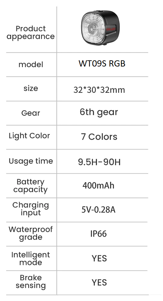 Luz Trasera WT09S RGB Luces Rojas, Verdes, Azules, Amarillas y Blancas