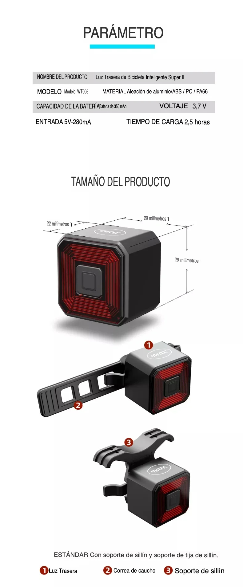 • Material: aleación de aluminio.