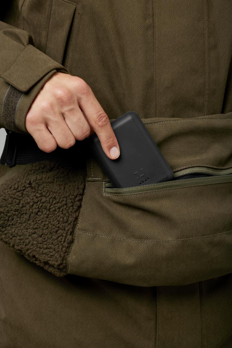 El manguito Driven Hunt HEAT Muff es un manguito cálido y forrado que cuenta con la tecnología HEAT de Härkila, que te permite ajustar la temperatura interior al nivel que desees. El cinturón extraíble suministrado facilita el enganche del manguito en la cintura, para tenerlo siempre a mano, incluso cuando estás ocupado y en movimiento.