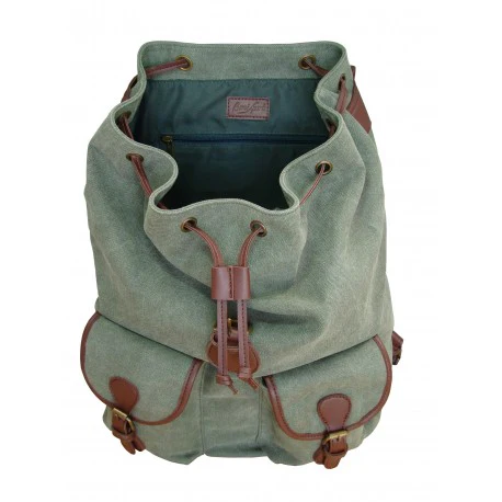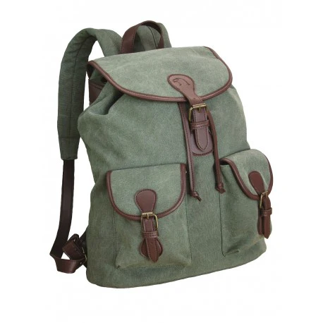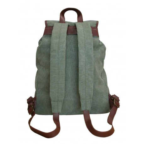 Mochila de loneta lavada repelente al agua, con remates en polipiel