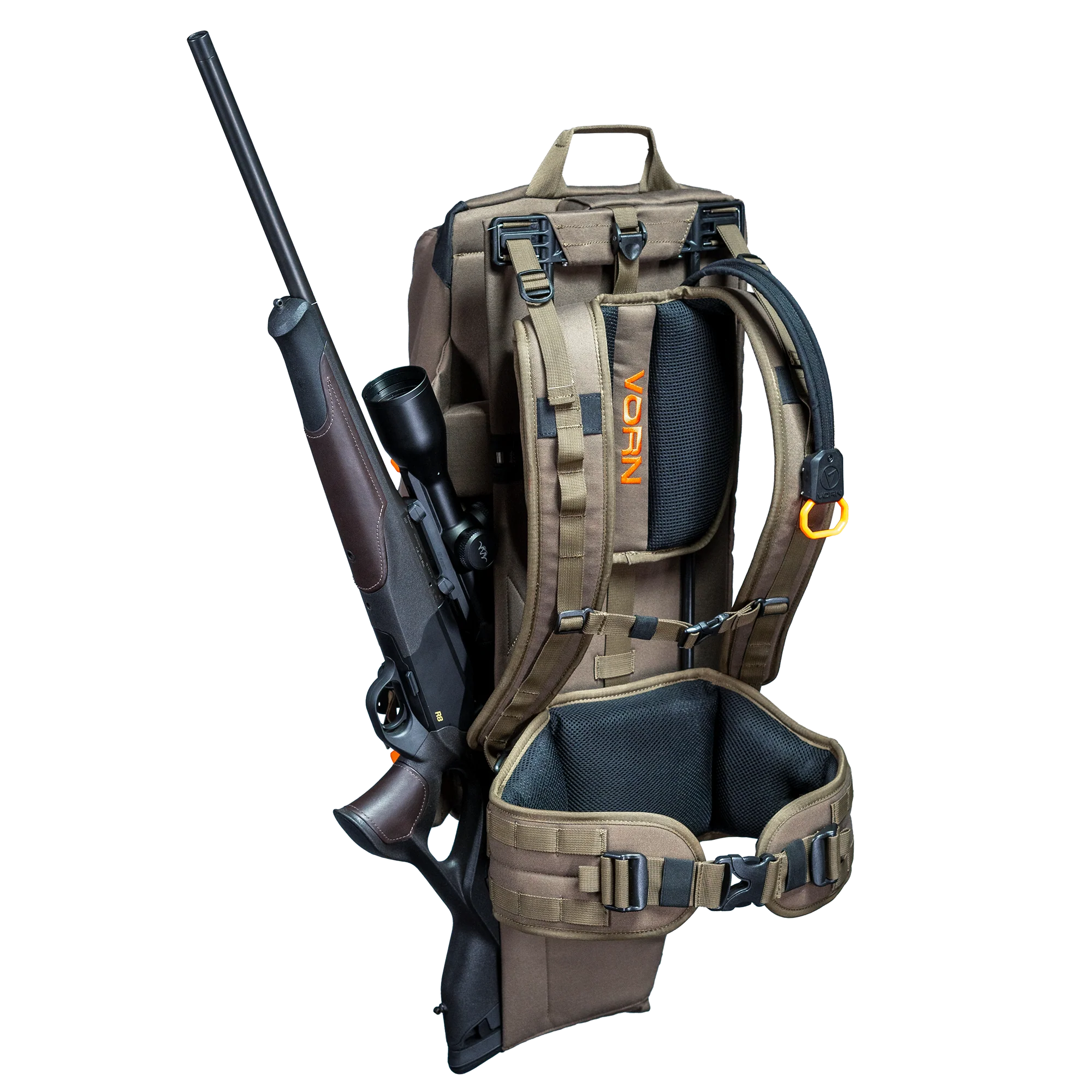 Las mochilas de caza de Vorn se han convertido en las favoritas de los cazadores de todo el mundo. Con tu arma de fuego bien protegida dentro de la mochila, podrás concentrarte en la caza. El sistema Quick Rifle Release( Liberación rápida de Rifle) le brinda acceso rápido y fiable a su arma de fuego cuando esté listo para disparar.