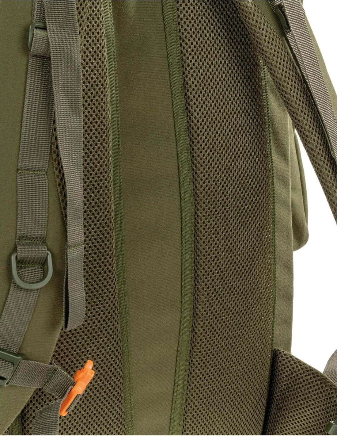 Gran capacidad de carga en esta mochila de caza confeccionada con un tejido silencioso e impermeable.
