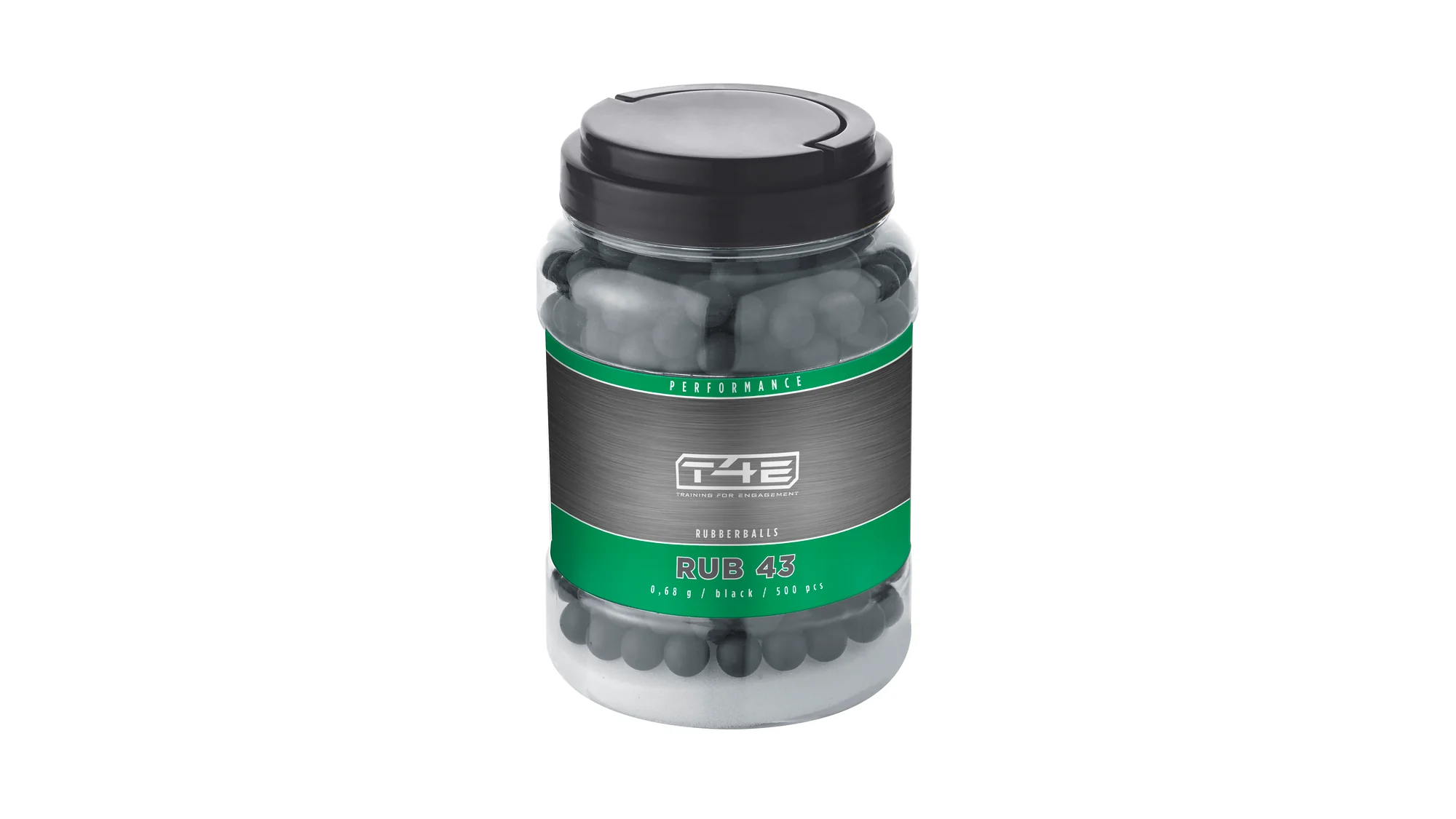 Las pelotas de goma negras son un equipo estándar en las actividades de T4E. Su alta calidad las hace ideales para el entrenamiento policial. Estos proyectiles de precisión son seguros en cualquier calibre (.43 / .50 / .68).