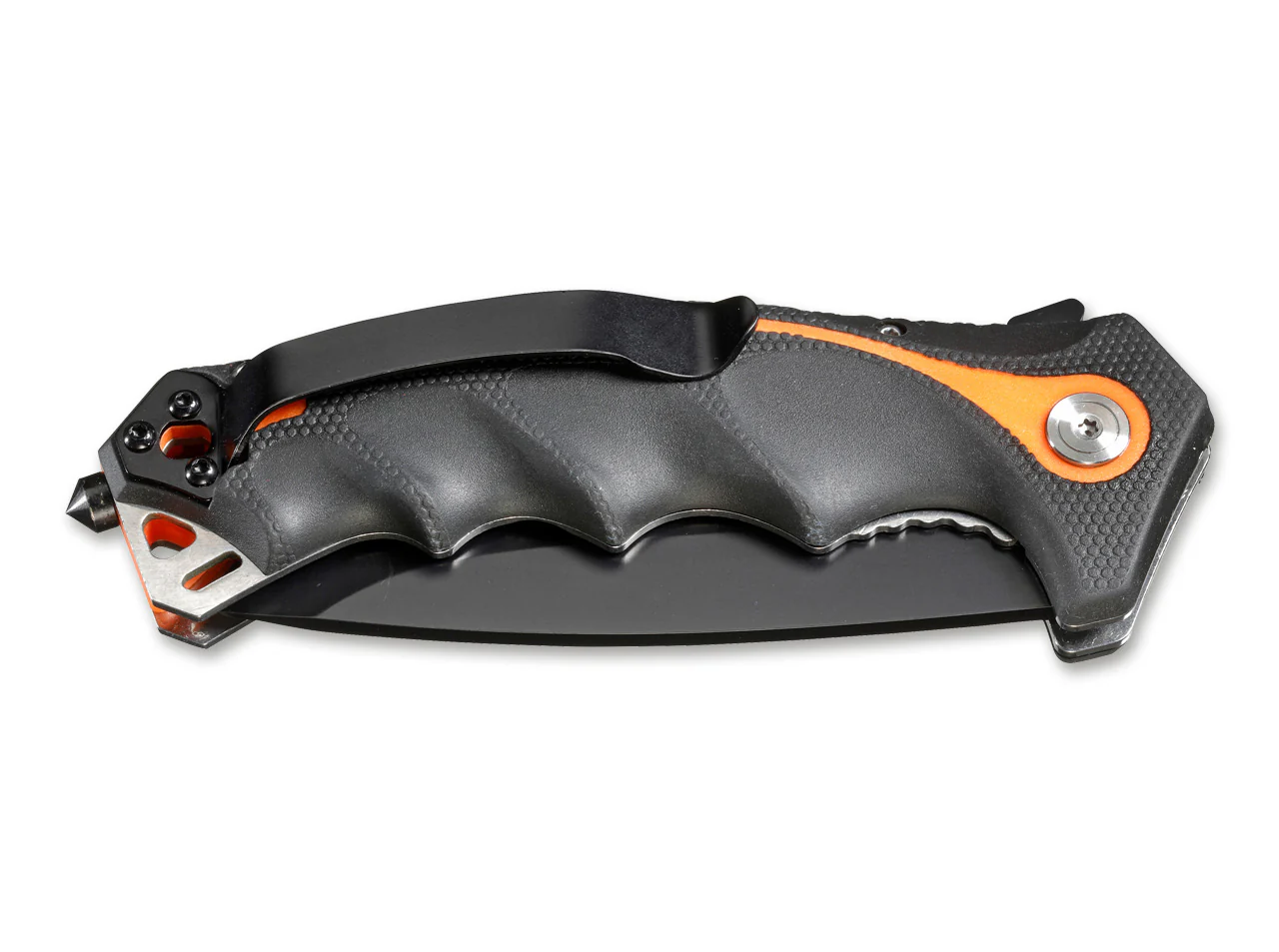 Magnum Chainsaw Attendant es un compañero indestructible, robusto y práctico para los operadores de motosierras. Las ranuras para los dedos, el mango de plástico de color de señal con un estuche Kraton, revestimientos de acero inoxidable sólidos, un rompecristales y un compartimento hexagonal para brocas son características sorprendentes que hablan por sí mismas. La cuchilla de punta de rodamiento de bolas de acero 440B resistente con gran retención de bordes se puede abrir fácilmente incluso con guantes de trabajo gruesos. Un clip grande completa la gama de características prácticas. La navaja de bolsillo Chainsaw Attendant Black tiene un revestimiento negro y un borde parcialmente aserrado para materiales fibrosos como cordones o cuerdas.