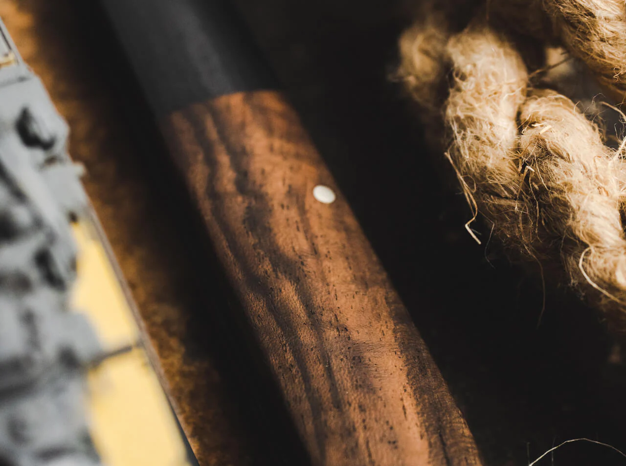 Inmediatamente después del final de la Segunda Guerra Mundial, una empresa noruega especializada comenzó a canibalizar el barco, que se había hundido frente a las costas noruegas, con el fin de disponer del acero de alta aleación para fines civiles. Buceadores noruegos recuperaron del fiordo partes del blindaje especial del Tirpitz para Boker. A partir de estas piezas de historia viva, el herrero damasquino de Boker forja en exclusiva un extraordinario damasco provisto de una historia fascinante. El patrón de la Gran Pirámide en 200 capas distingue la hoja de Damasco forjada a mano y hace que el cuchillo sea un punto culminante de cualquier colección de cuchillos. Sin embargo, la combinación de acero Tirpitz con aceros al carbono para herramientas también da como resultado un damasco extremadamente duradero que, con una dureza Rockwell de 61 a 63 HRC, está a la altura de cualquier tarea en el uso diario.