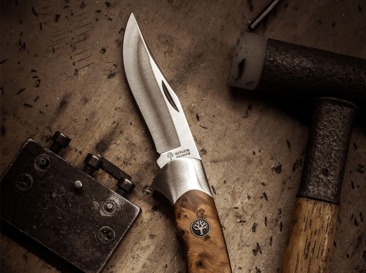 La hoja rectificada hueca de acero inoxidable N690 está forjada por Böhler y contribuye con su forma memorable a la incomparable apariencia de la Scout. Un Backlock clásico mantiene la hoja abierta de forma segura. Cuando se abre el cuchillo, el lomo se bloquea en una muesca en la parte posterior de la hoja. Para cerrar el cuchillo, empuje hacia abajo la parte expuesta del lomo. La armónica impresión general de este clásico se completa con las escamas del mango de agradable forma hechas de madera de Thuja certificada importada de tonos cálidos.