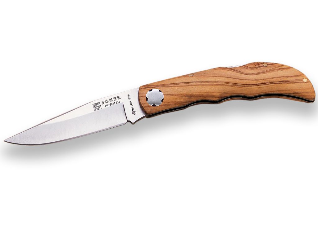 Navaja deportiva Joker «Pointer» NO68, mango de olivo, hoja de 9,5 cm MOVA, peso 100 gr, herramienta de pesca, caza, camping y senderismo con las siguientes características: