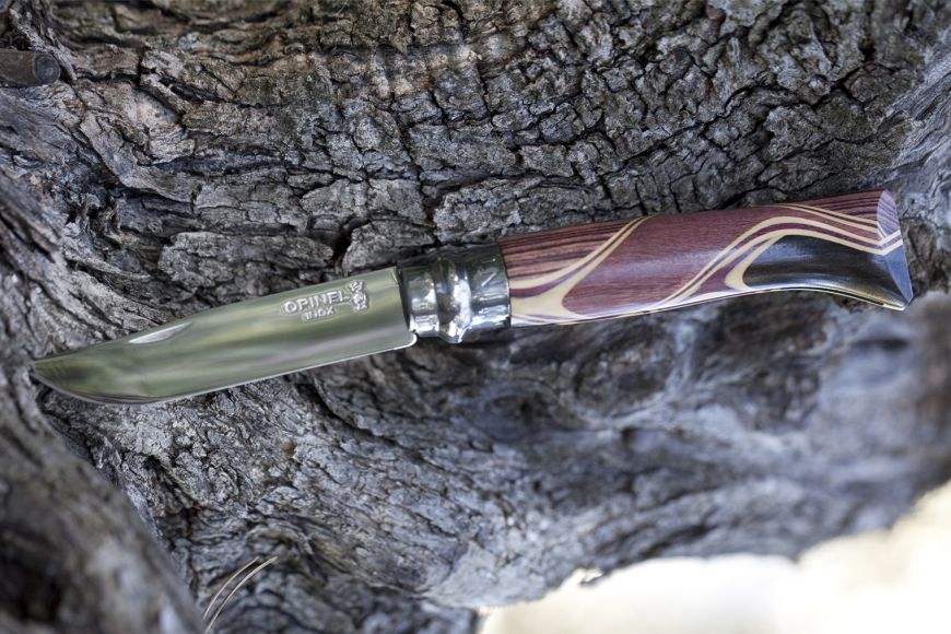 Cada navaja es única: la mezcla de madera, el pulido manual y la hoja de poliglás hacen de estos productos las excepciones más valiosas de la gama Opinel.
