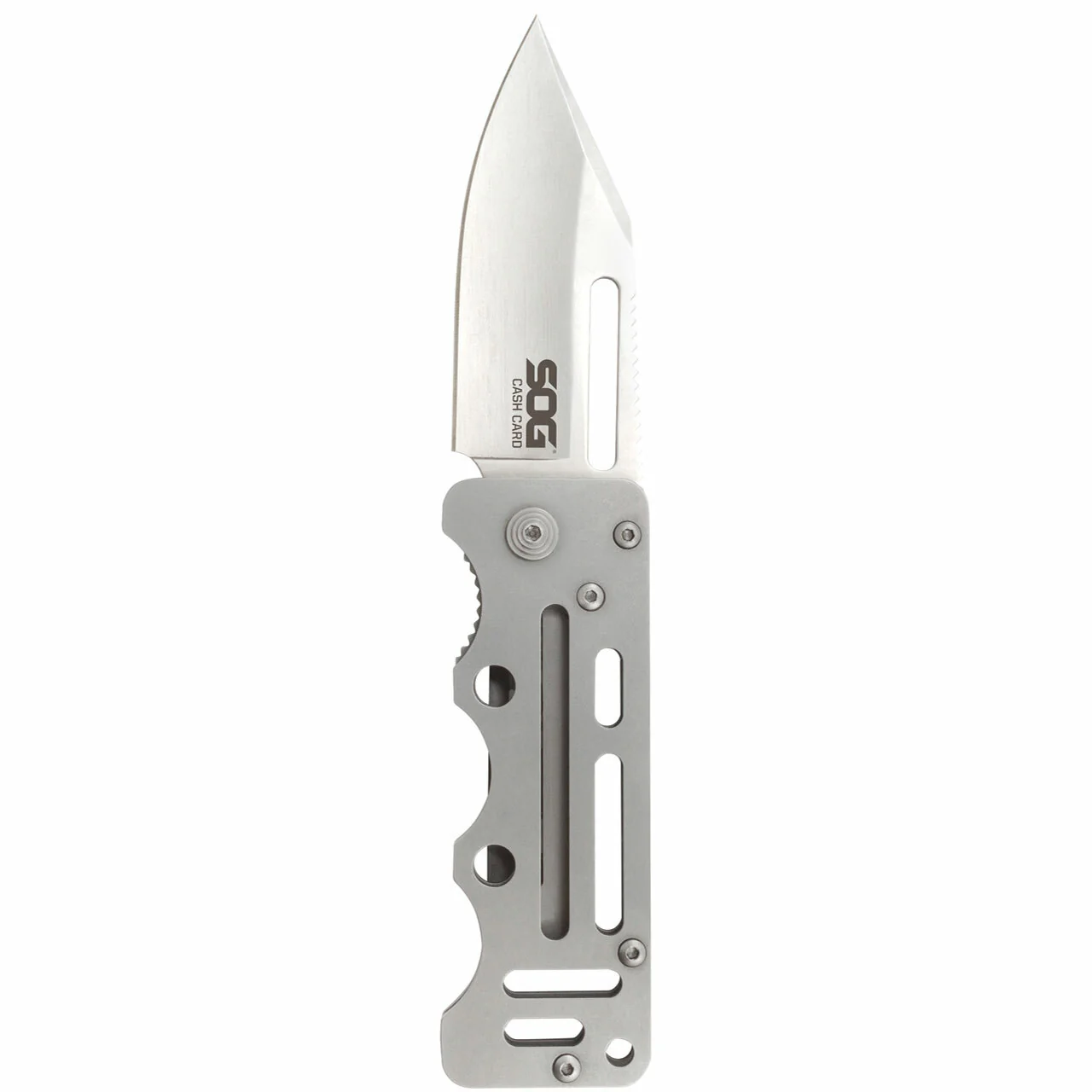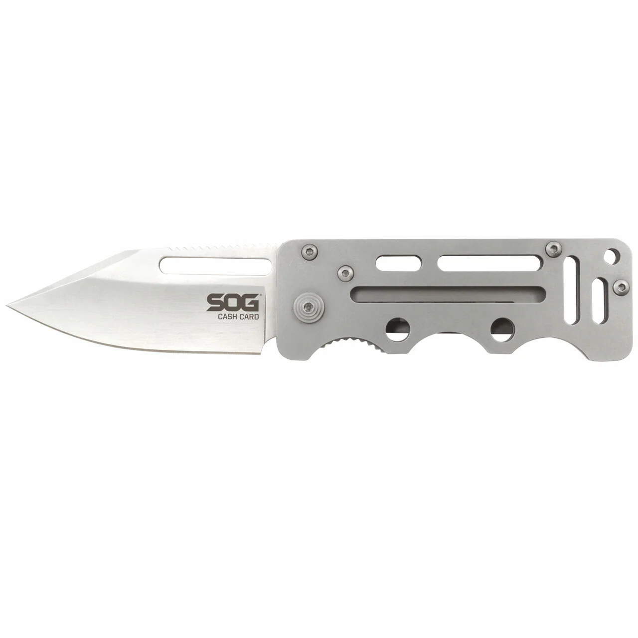 Simple, ligera y compacta: la SOG Cash Card es la navaja soñada por los minimalistas. Cuenta con una hoja duradera en un perfil delgado que se oculta fácilmente en cualquier bolsillo. Engánchela en el interior de su bolsillo o utilícela como pinza para dinero y tarjetas, y le asegurará que tiene todo lo que necesita para sobrevivir en el mundo moderno. Las asas bien diseñadas, aunque finas, son cómodas de sujetar y utilizar. Gracias a su construcción totalmente metálica, la Cash Card puede soportar años de abuso. La estructura esquelética mantiene el peso y el volumen al mínimo, incluso con su sólido mecanismo de bloqueo de forro y su hoja de 2,75 pulgadas. A pesar de su pequeño tamaño, la Cash Card puede ofrecerle la máxima versatilidad como navaja de bolsillo. Parte# EZ1-CP