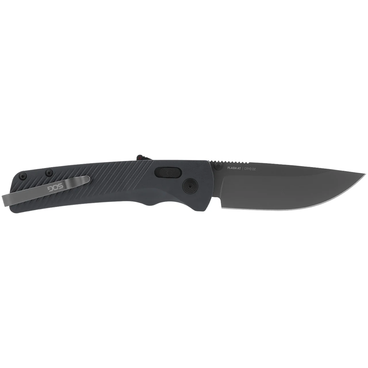 Diseñado para los usuarios de todos los días, Flash AT cuenta con una apertura rápida asistida con el innovador bloqueo ambidiestro AT-XR de SOG y un diseño de mango ergonómico y aerodinámico para mejorar el agarre y la comodidad. La Flash AT es compacta y fácil de llevar, con una hoja de acero inoxidable D2 de 3,5″ con tratamiento térmico criogénico. Su potente mecanismo de bloqueo XR también cuenta con un fiable seguro de bloqueo de la hoja y un sistema de seguridad montado en la columna vertebral. La siguiente evolución de la popular Flash.