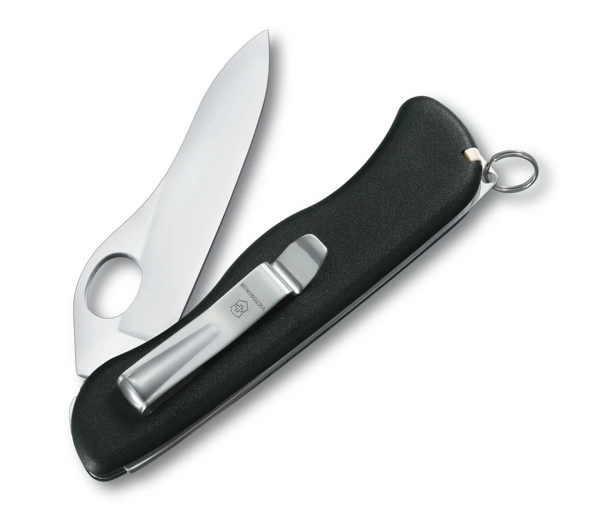 Enigmático y clásico, el color negro siempre tiene algo especial. Inspirado en las Navajas suizas, el broche Sentinel está listo para enfrentar cualquier desafío. Su hoja grande con bloqueo puede abrirse con una mano y el broche le permite sujetarlo a su bolsillo mientras se mueve ágilmente a través de sus aventuras diarias.