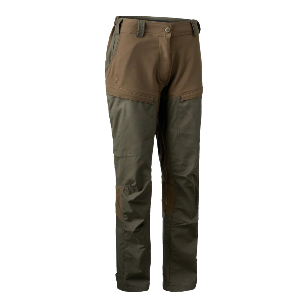 Elegantes y versátiles pantalones de exterior de la serie Lady Ann de Deerhunter. Estos pantalones tienen zonas de contrastes elásticos, lo que los hace increíblemente flexibles y garantiza una buena libertad de movimiento. Los pantalones Lady Ann tienen la certificación OEKO-Tex y están tratados con Teflon Shield+, que repele el agua y la suciedad y ayuda a que el tejido se seque más rápidamente.