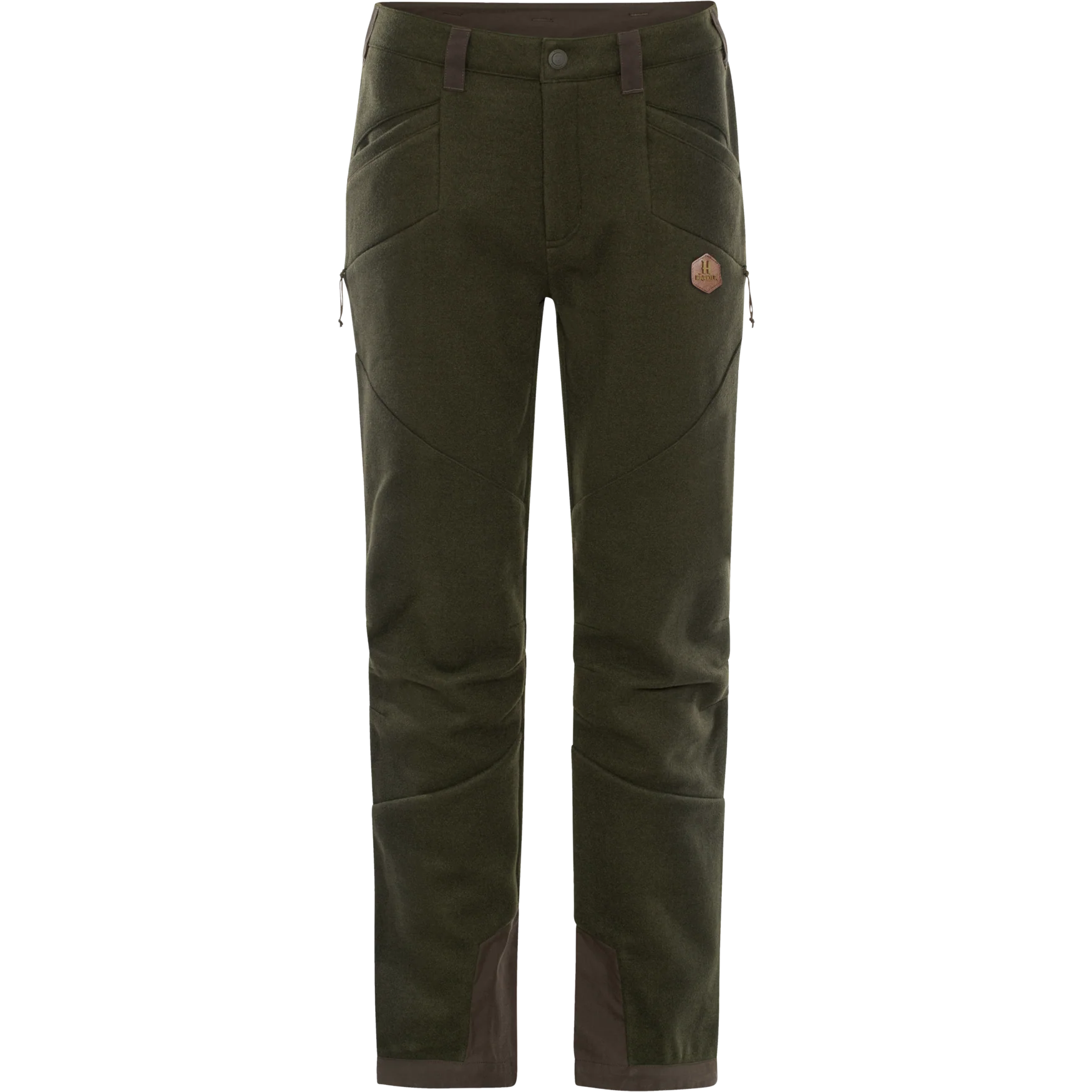 Los pantalones Metso Hybrid para mujer son unos pantalones de caza extremadamente cómodos con un corte femenino, en una mezcla de lana elástica y muy silenciosa, para la caza de ciervos o las salidas de principios de otoño. Además de las propiedades naturales de la lana que regulan la temperatura y repelen el agua, los pantalones Metso Hybrid cuentan con una membrana impermeable desde las rodillas hacia abajo. Esto los hace adecuados para condiciones climáticas cambiantes y para acechar en terrenos húmedos, a la vez que son muy transpirables y cómodos.