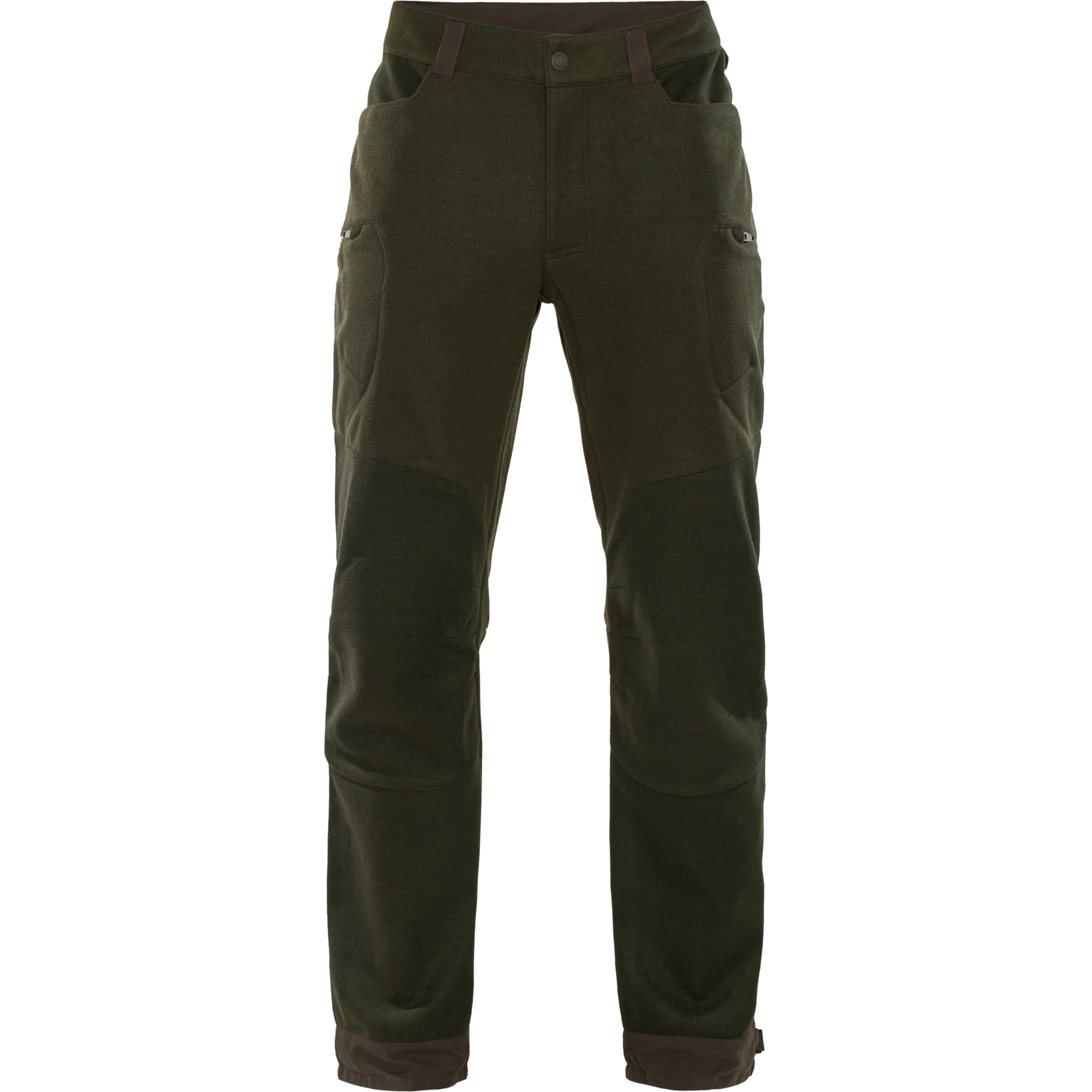 Los pantalones Metso Hybrid son unos pantalones de caza extremadamente cómodos, fabricados en una mezcla de lana elástica y muy silenciosa, para la caza de ciervos o para las salidas de principios de otoño. Además de las propiedades naturales de la lana que regulan la temperatura y repelen el agua, los pantalones Metso Hybrid cuentan con una membrana impermeable desde las rodillas hacia abajo. Esto los hace adecuados para condiciones climáticas cambiantes y para acechar en terrenos húmedos, a la vez que son muy transpirables y cómodos.