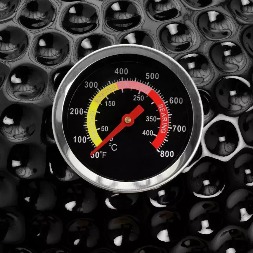 • Termómetro incorporado: Equipada con un termómetro confiable en la parte superior de la cúpula, esta parrilla elimina las conjeturas al asar y brinda lecturas de temperatura precisas de un vistazo.