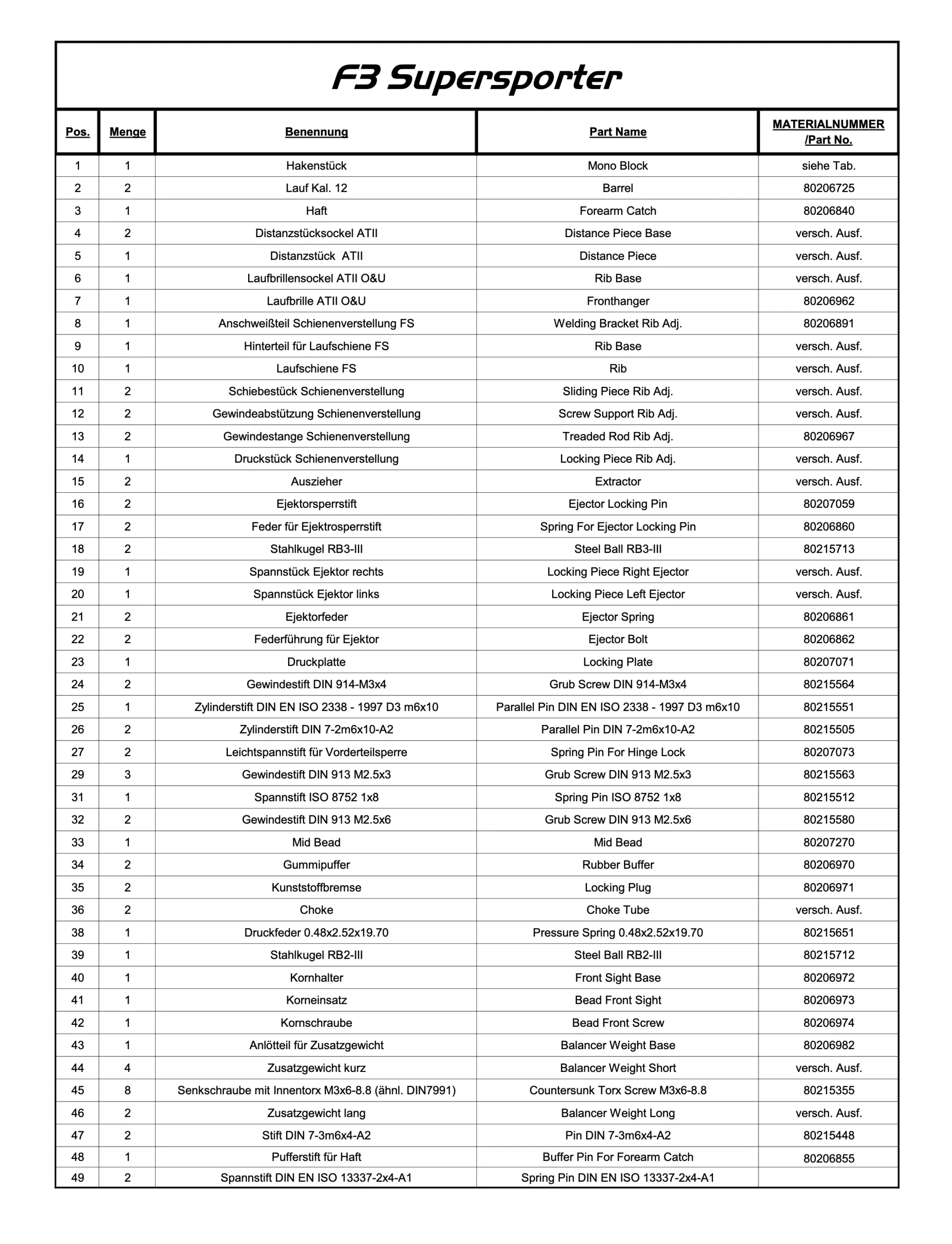 Piezas originales de escopeta superpuesta Blaser F3 Supersporter.
