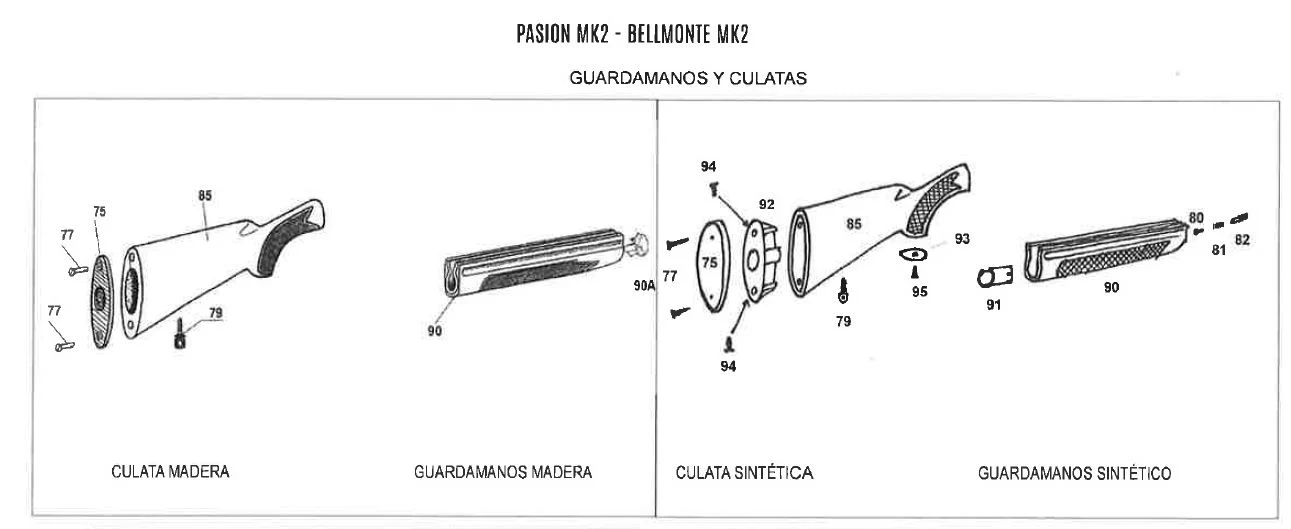 Piezas originales de escopeta Benelli Superligera, Benelli Premium, 121, 125 y Bellmonte