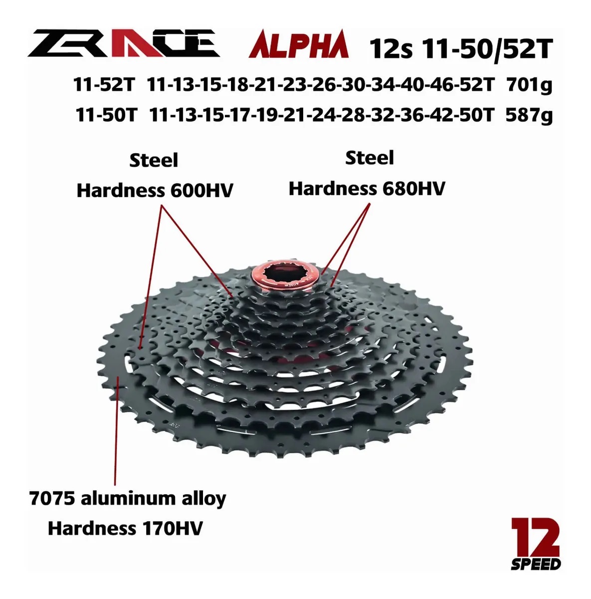 • Peso:11-50T: 578g / 11-52T: 702g