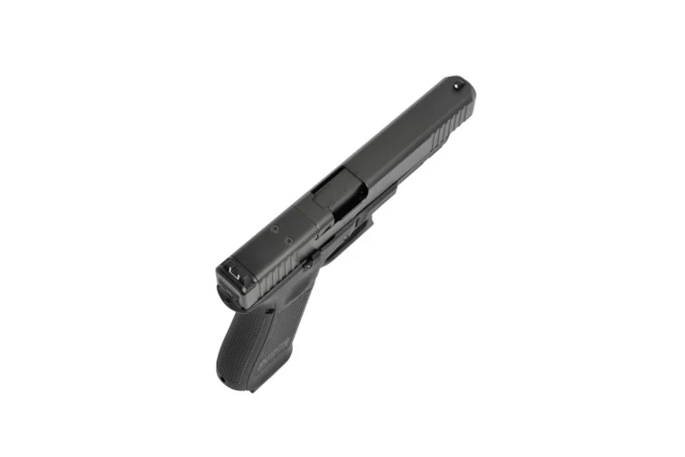 La GLOCK 34 Gen5 MOS presenta un cañón extendido y mayores dimensiones de la corredera, lo que la convierte en una de las favoritas entre los competidores de tiro deportivo.