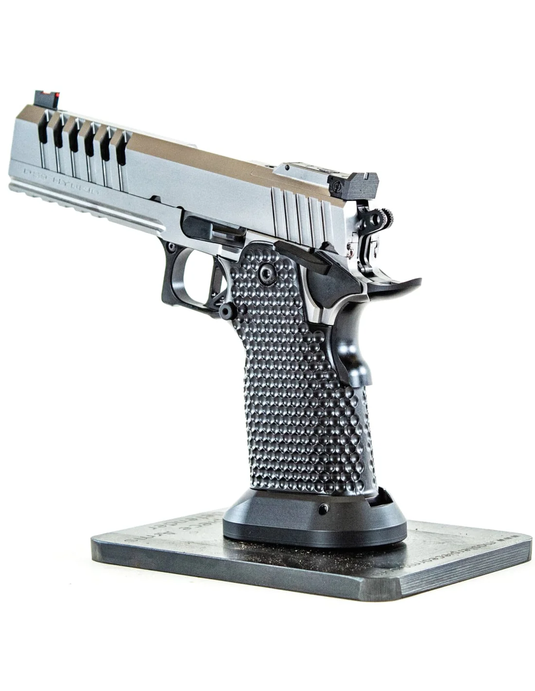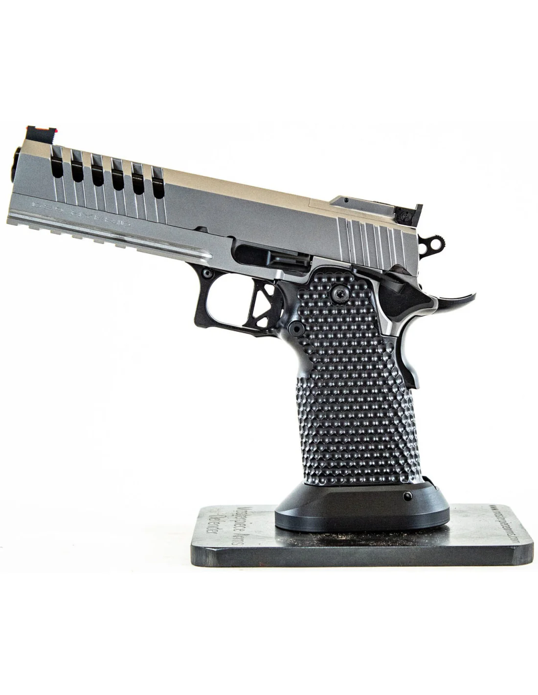 La DS9 Hybrid es una pistola estilo 1911 de cuerpo ancho y doble pila. Esta pistola ha sido creada para funcionar con miras metálicas o miras réflex. Construida, ajustado y afinada a mano. Increíblemente precisa y fiable, con garantía de por vida.