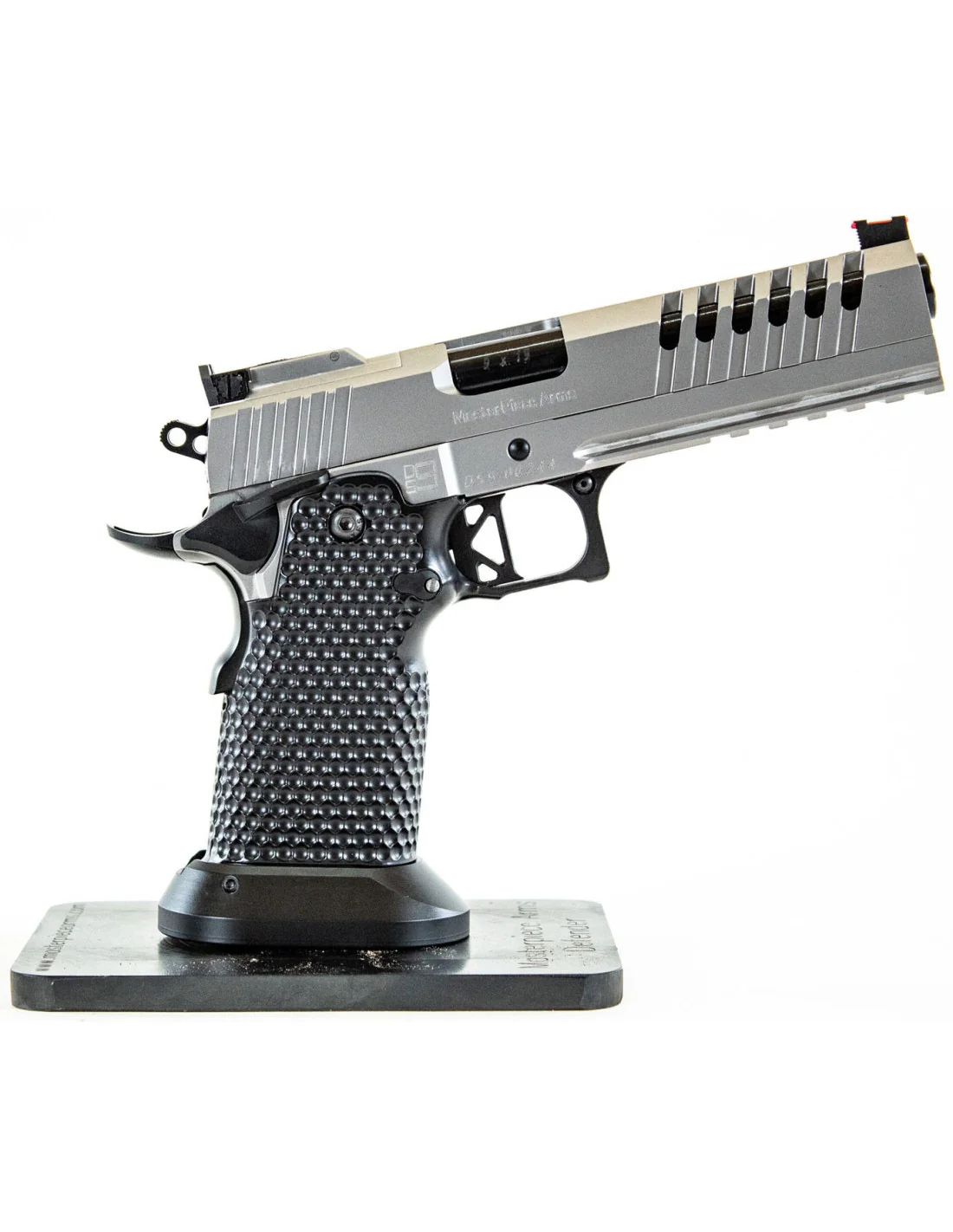 Masterpiece Arms (MPA) es una marca americana creada en el año 2000 que durante estos años ha ido alcanzando un alto prestigio en el mundo del tiro y la competición. Su línea de productos ha crecido significativamente a lo largo de los años y una de sus insignias son las pistolas “Double Stack 1911”. Su método para perfeccionar las armas de fuego que comercializa es utilizar sus productos en las competiciones de tiro más exigentes tanto en PRS/NRL como en USPSA y disciplinas de tiro relacionadas. Utilizada por los mejores tiradores del país, esta estrategia proporciona productos que están en la cima de su campo, desarrollando tecnología y características líderes en el mercado.