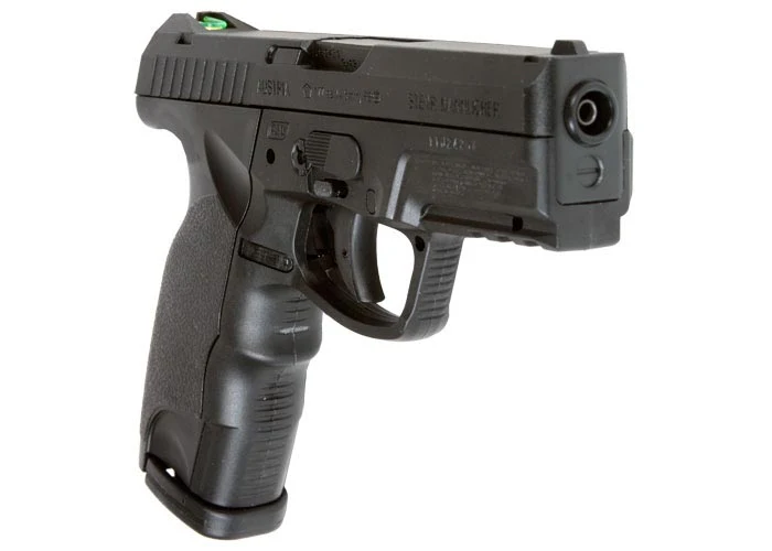 El fabricante austriaco Steyr Mannlicher ha fabricado una empuñadura ergonómica con un ángulo de 111 grados para mejorar al máximo el agarre de la pistola. Además, la empuñadura tiene una estructura picada que permitirá al tirador un tacto anti-deslizante. En la parte lateral de la corredera, incorporará una bombona de Co2.