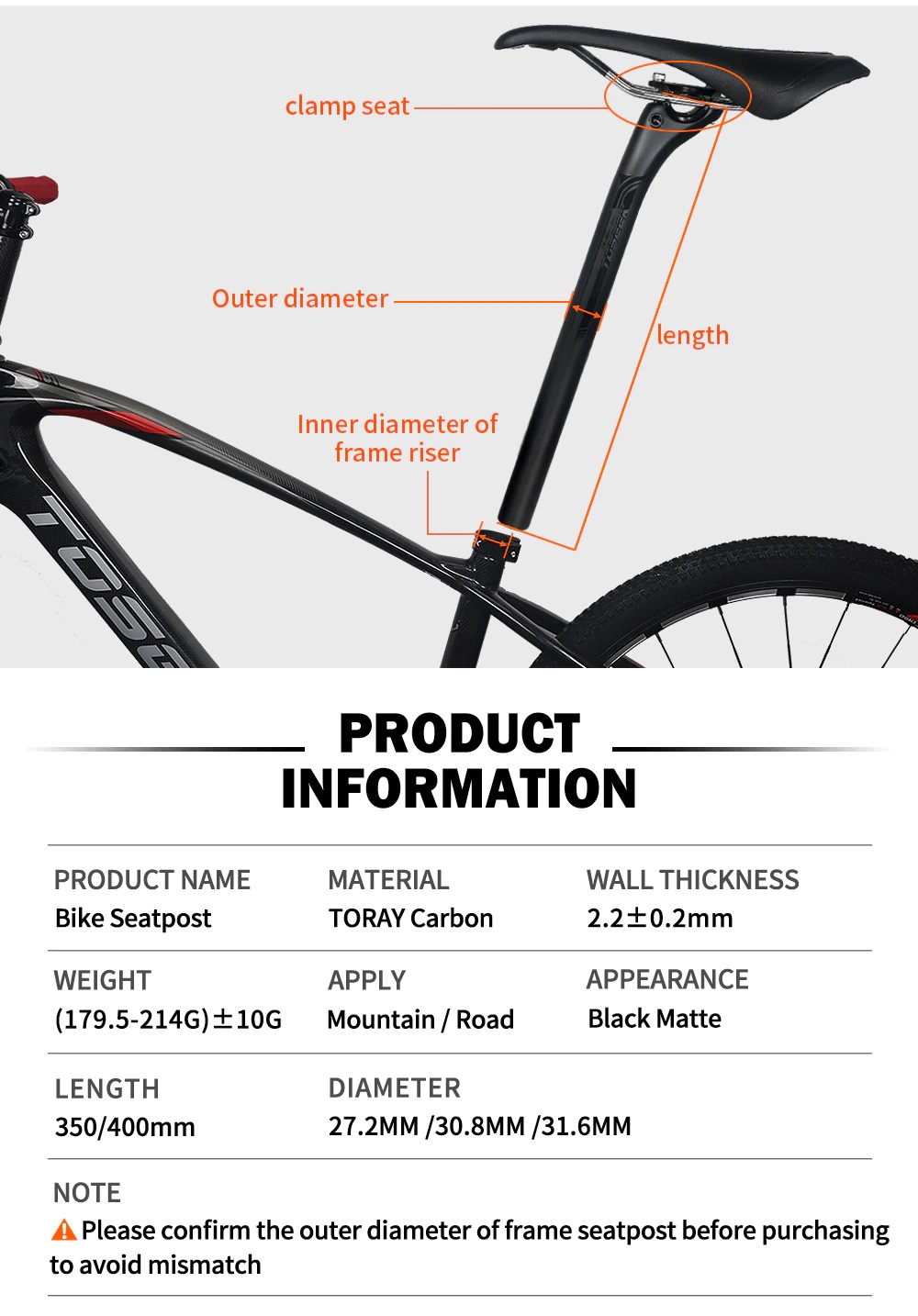 Sé el primero en valorar “Poste / Vela / Portasilla Vela Toseek TS160 Fibra de Carbono MTB Ruta”