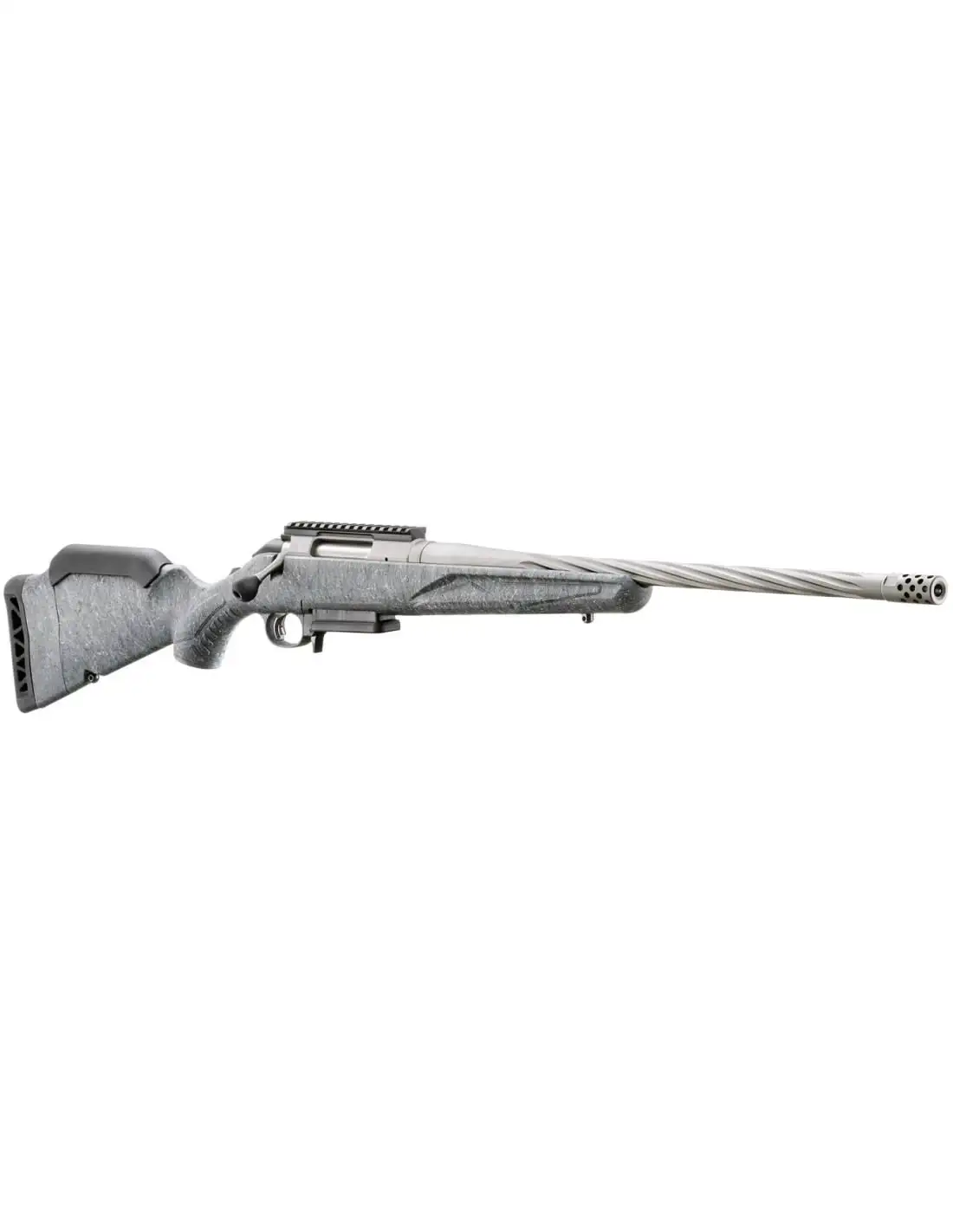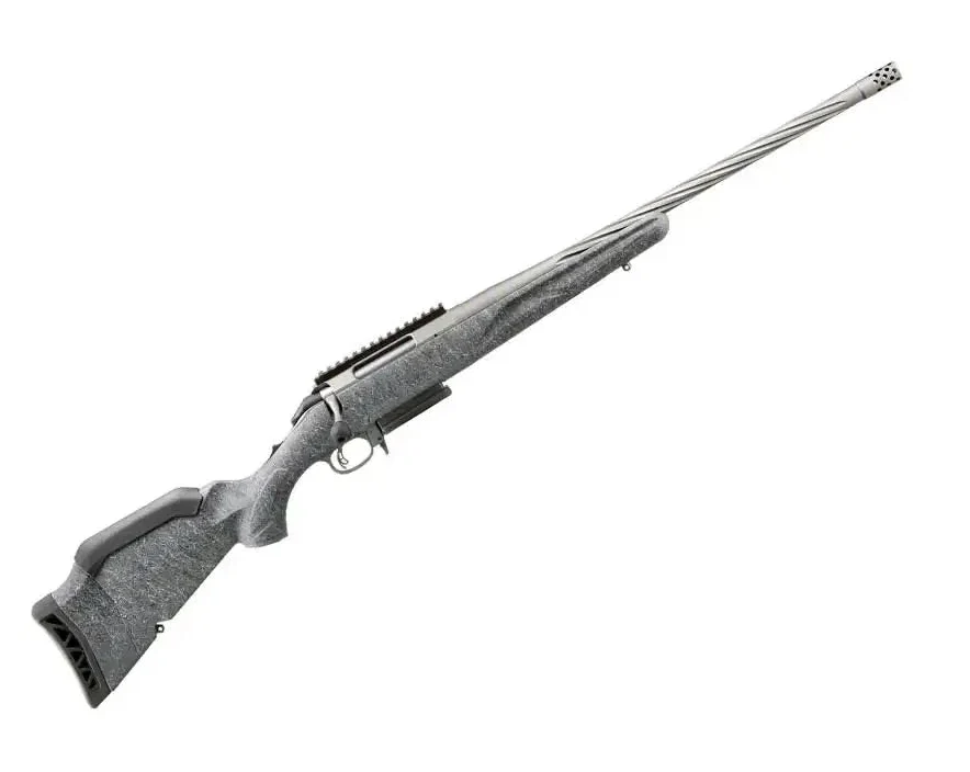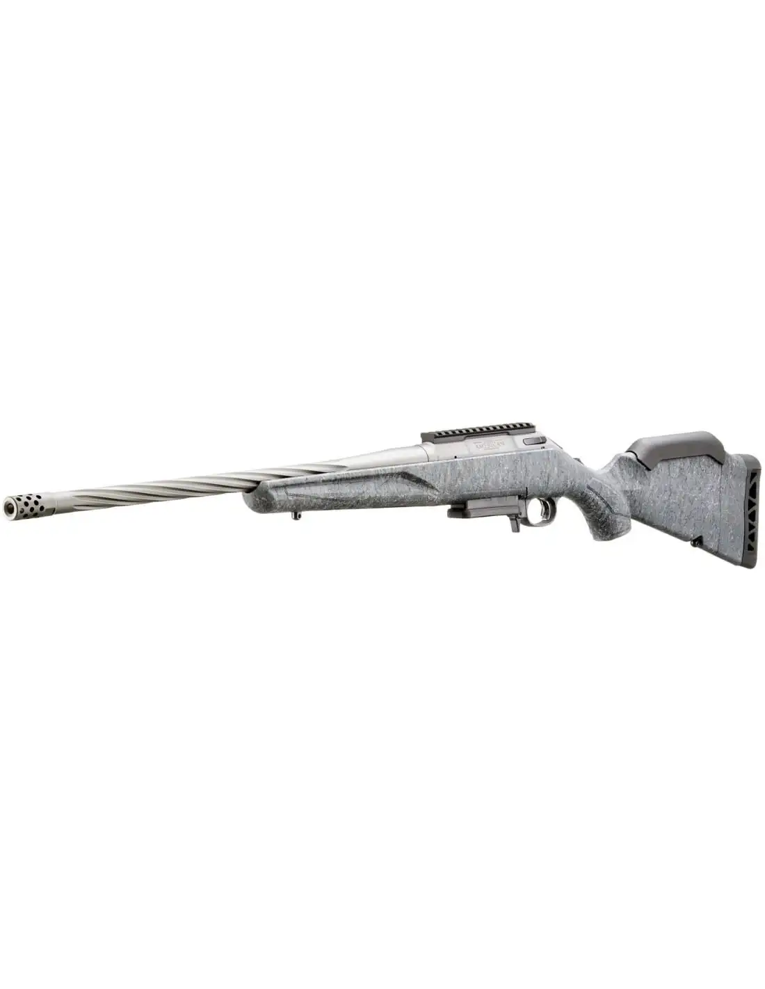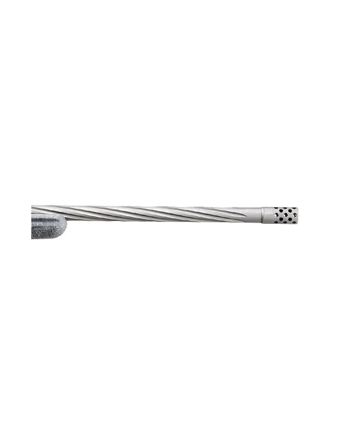 Los modelos estándar de Generación II cuentan con una acción y cañón en acabado Cerakote™ gris metalizado duradero y una culata sintética en color gris oscuro texturizada con salpicaduras negras y grises para un excelente agarre y control del arma. El cañón de 20″ de contorno medio, forjado y martilleado en frío, presenta profundas estrías en espiral, lo que mejora el equilibrio del rifle sin sacrificar la rigidez o la precisión. Viene con un freno de boca radial instalado de fábrica.