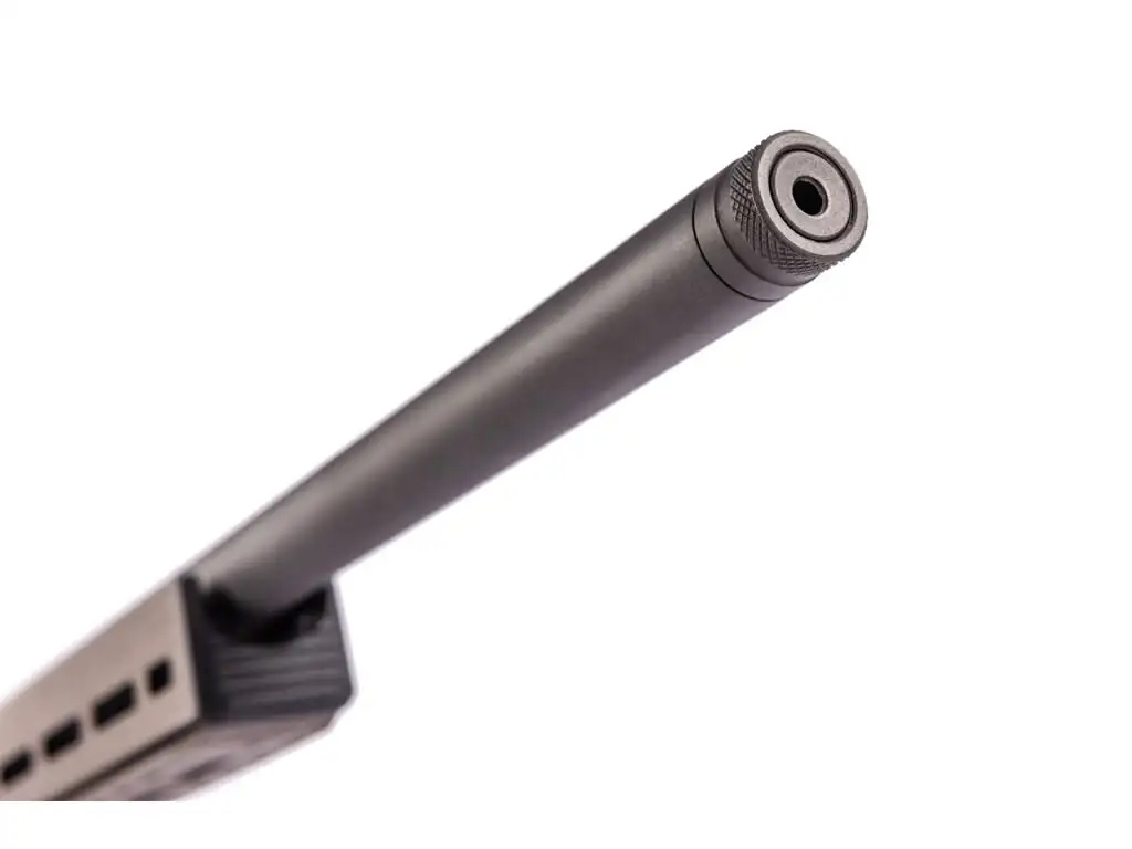 El cañón de flotación libre, forjado en frío, está construido para minimizar las vibraciones y resistir el calor, asegurando una precisión constante durante el disparo. Su longitud mejora la velocidad de la bala, proporcionando trayectorias más planas y un mejor rendimiento a largas distancias. El cañón también cuenta con una rosca de boca de 5/8″-24 para una mayor versatilidad.