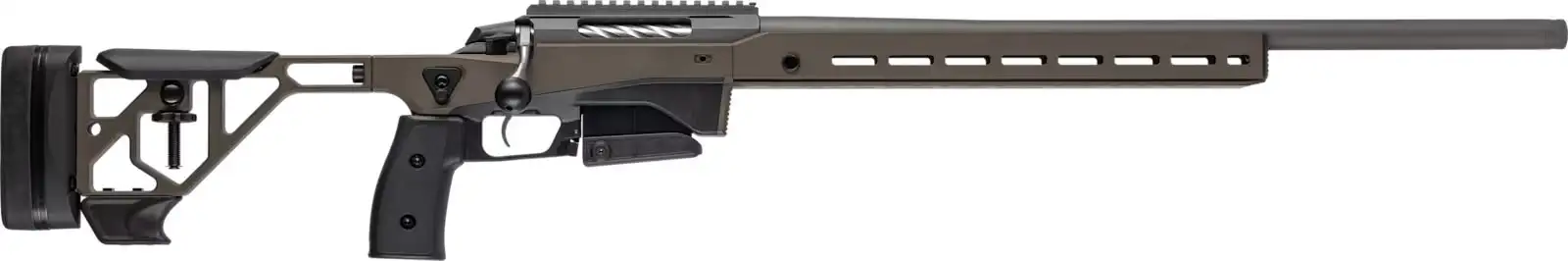 El carril Picatinny de 20 MOA simplifica el montaje del visor para disparos a larga distancia. El rifle también está equipado con raíles M-LOK y Arca-Swiss RRS®, que ofrecen opciones versátiles para acoplar accesorios como bípodes, trípodes, linternas y otros equipos tácticos. Estas características permiten a los usuarios personalizar el rifle con pesos adicionales para un equilibrio preciso, mejorando la estabilidad y el rendimiento general para adaptarse a las preferencias individuales.