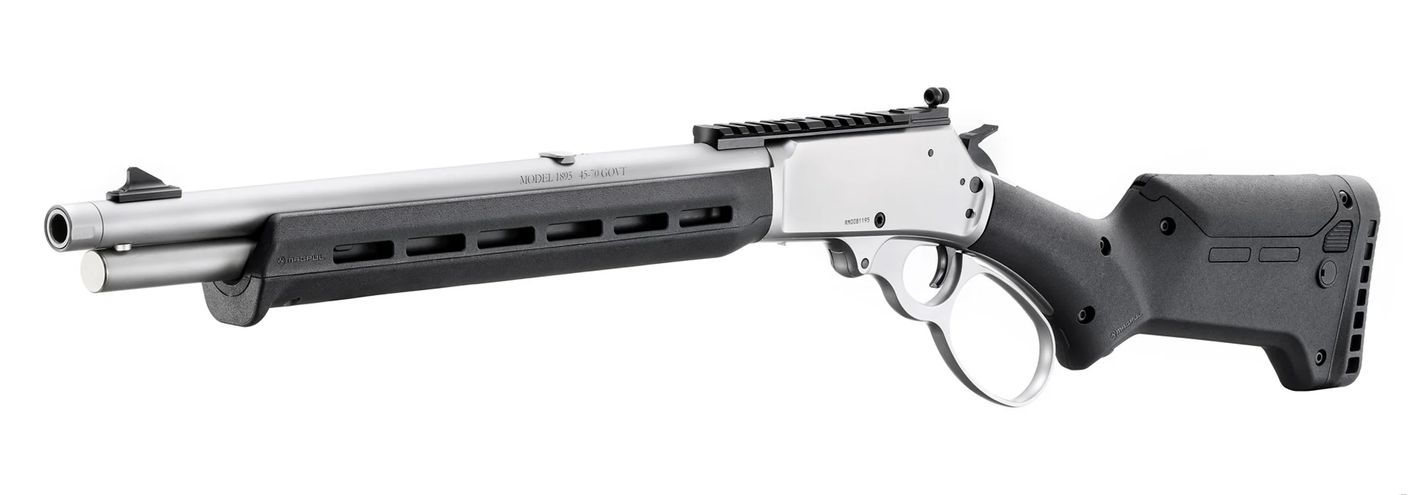 La gama Marlin 1895, calibrada en el contundente .45-70 Government, son los rifles más poderosos de este fabricante, capaces de abatir cualquier animal europeo o americano en el rango de hasta los 150 m. Evolutivamente el modelo 1895 es un 336 en calibre .45-70 Government, que aprovecha todas las buenas características del exitoso modelo de Marlin. La robustez del cajón de mecanismos, que es un bloque de acero mecanizado lo justo, se ha adaptado sin problemas al incremento de potencia requerido. Consiguiendo a su vez una gran rigidez estructural, que se plasma en una muy buena precisión.