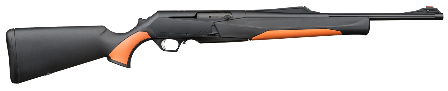 - Diseño sintético con bandas de color naranja: El diseño sintético del rifle, complementado con bandas naranjas, proporciona durabilidad, resistencia, y una apariencia distintiva en el campo.