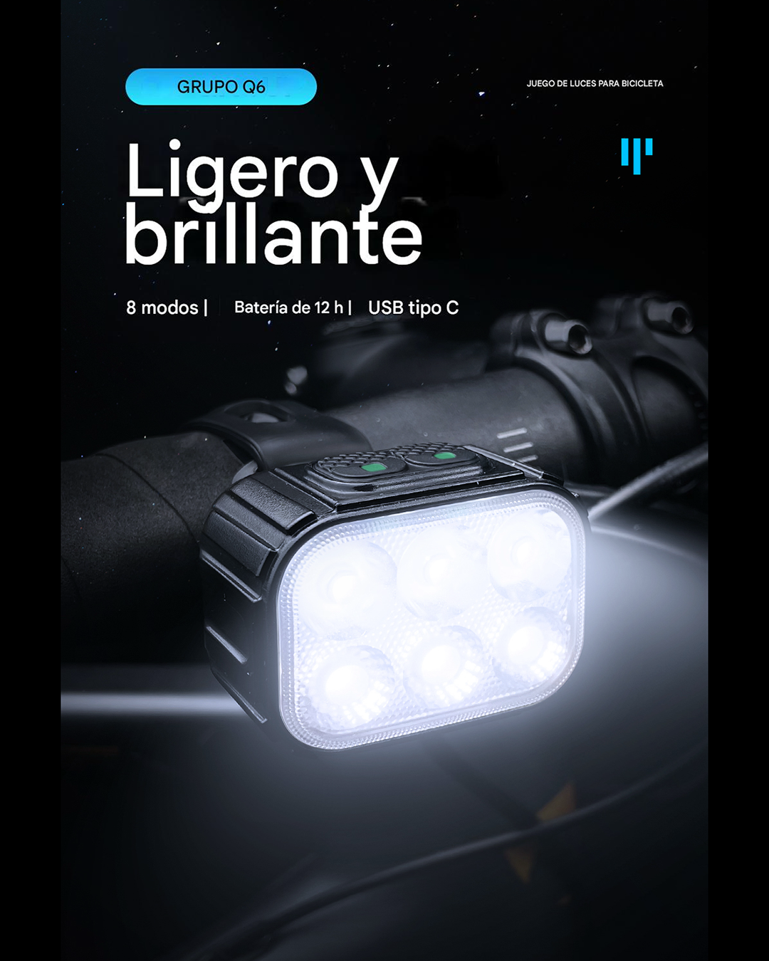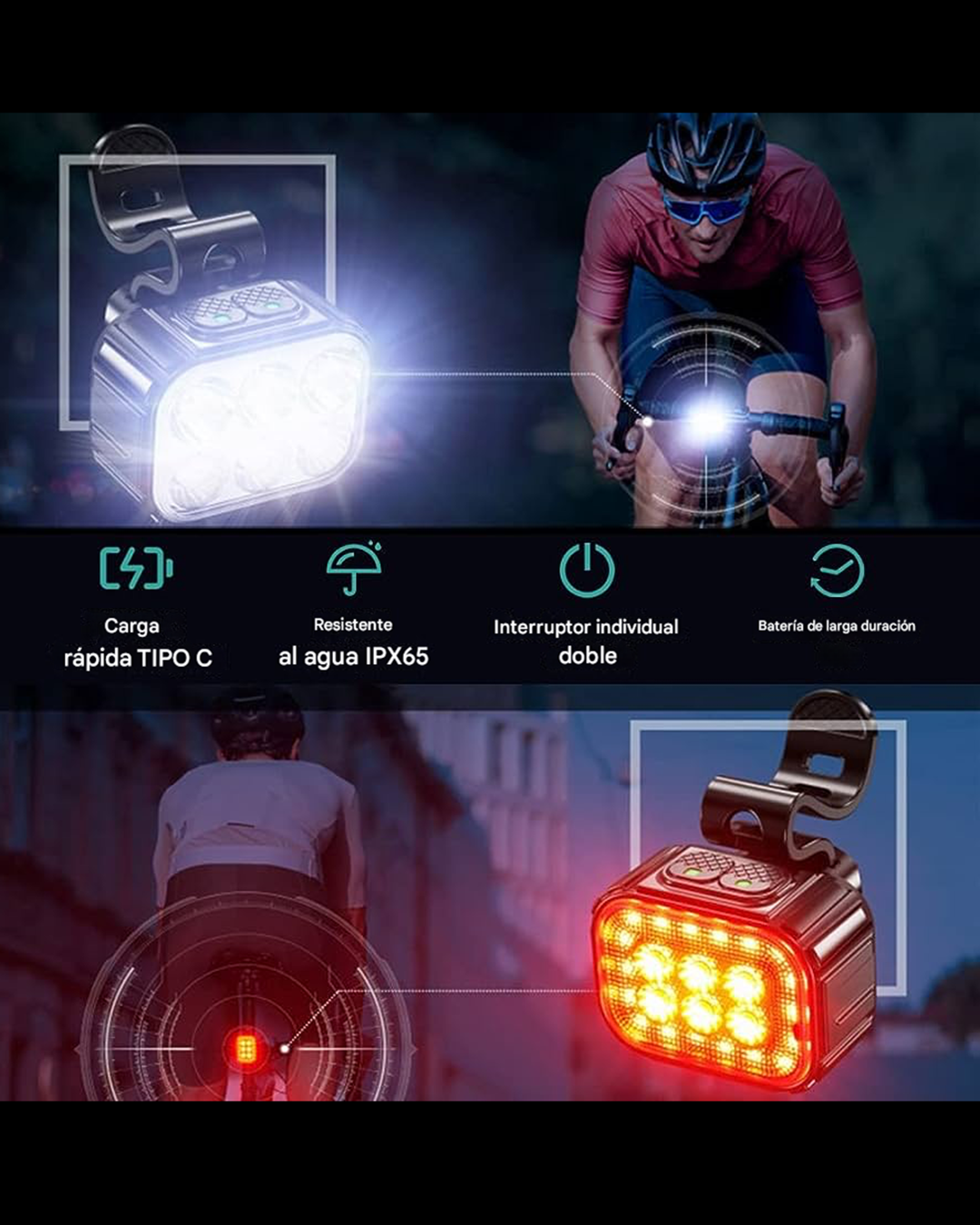 Grupo de luces delanteras y traseras de bicicleta Q6
