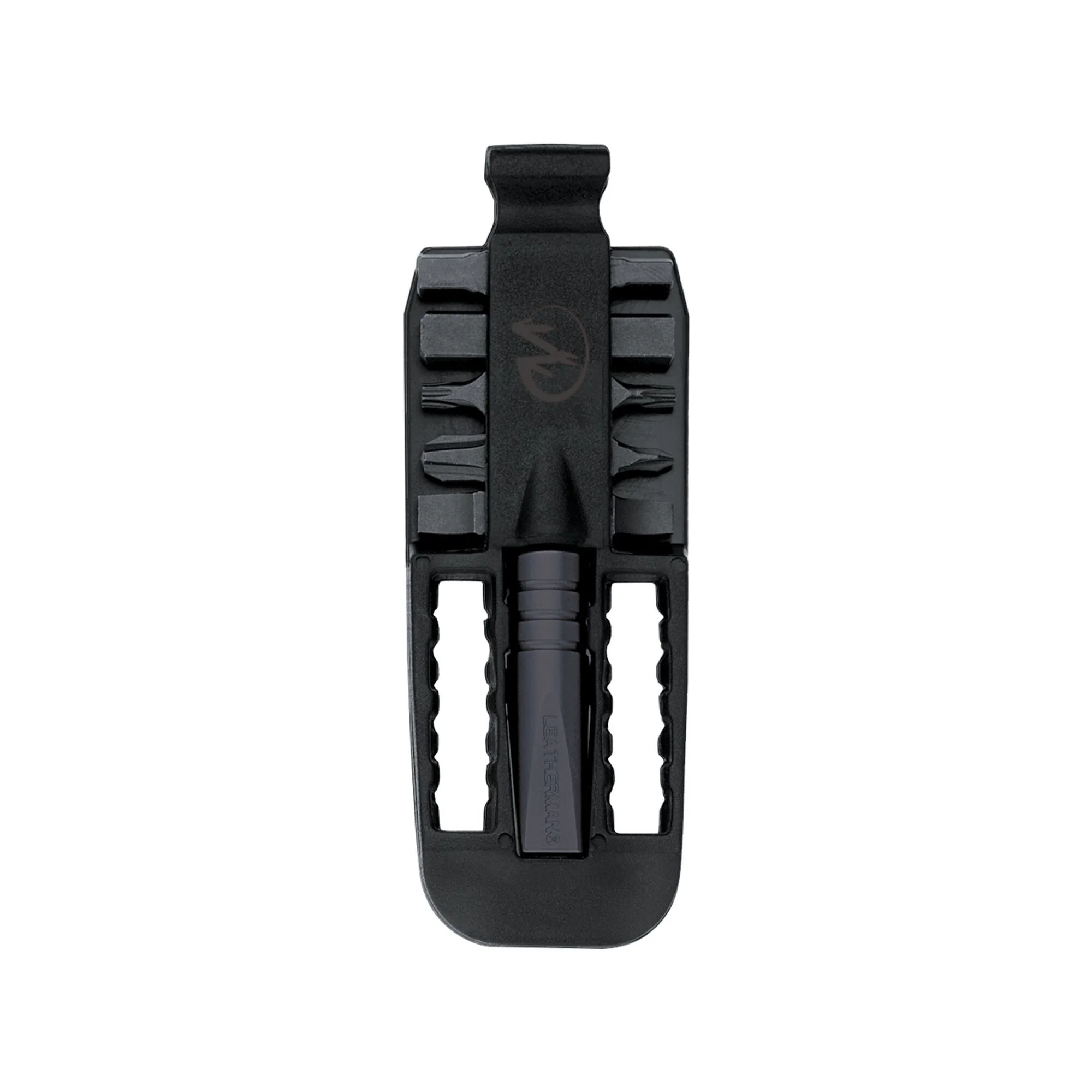 Añade 10 funcionalidades extra a tu herramienta Leatherman favorita con el soporte para puntas extraíbles. El juego incluye un destornillador y cinco puntas de acero para herramientas con dos extremos. El extensor también funciona con puntas hexagonales de 1/4”. En el soporte se almacenan además las tradicionales puntas hexagonales. Disfruta de una funcionalidad adicional para tu herramienta.