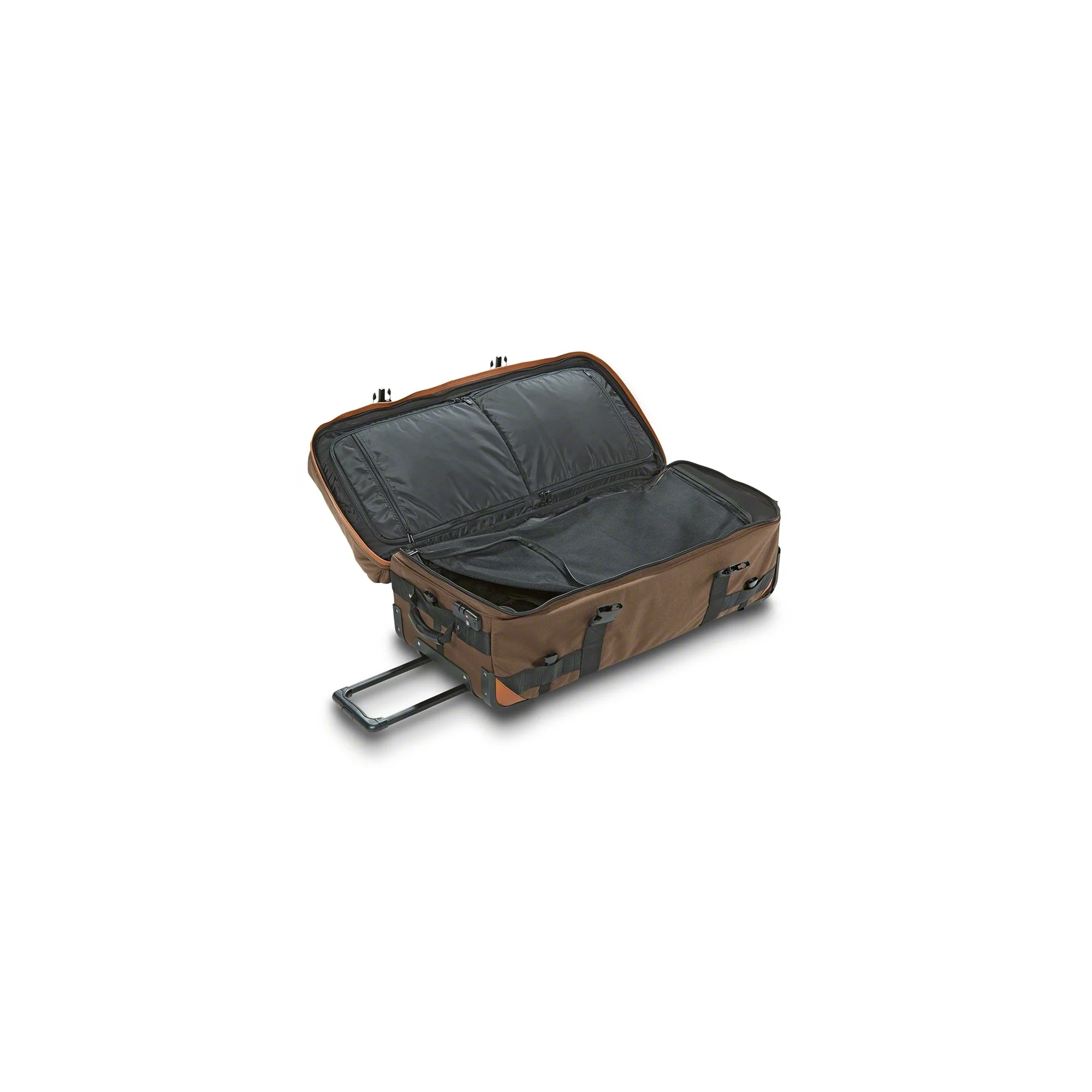 El versátil sistema de bolsillos y compartimentos incluye bolsillos con cremallera y un bolsillo exterior para documentos. Proporciona un espacio de almacenamiento óptimo para el transporte compacto de todo su equipaje de caza. Manejo cómodo gracias al asa telescópica retráctil, las grandes ruedas con cojinetes de bolas, el soporte extensible y la correa de transporte ancha y ajustable en longitud. Mango de goma antideslizante en la parte superior con cierres resistentes a los golpes. Fijación segura con cinco correas de longitud ajustable. Se puede cerrar con cerradura de combinación TSA.